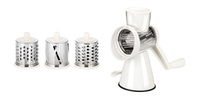 Univerzální mlýnek Handy s vakuovou přísavkou a 4ks nerezových bubnových struhadel. Celý popis >