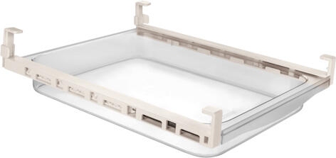 Zásuvka je univerzální, vhodná pro umístění pod všechny běžné typy vyjímatelných lednicových i skříňkových polic. Uchycení zásuvek FlexiSPACE k policím je snadno nastavitelné na konkrétní hloubku i tloušťku police, vysunování i zasouvání je plynulé.