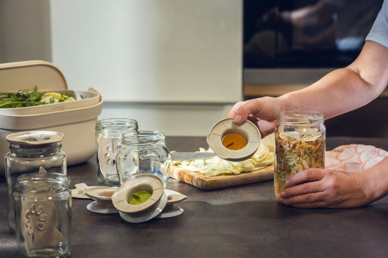 Je vhodné pro přípravu domácích kvašených pokrmů. Mezi potraviny vhodné k fermentování patří různé druhy zeleniny, mléčné výrobky (kefír, jogurt) nebo chlebový kvásek. Víčko má speciální ventil, který při procesu kvašení uvolňuje CO2 ze sklenice a zároveň zabraňuje propouštění vzduchu dovnitř. Součástí produktu je i pružná přítlačná vložka, která po celou dobu fermentování udržuje zeleninu pod hladinou nálevu. Postup: