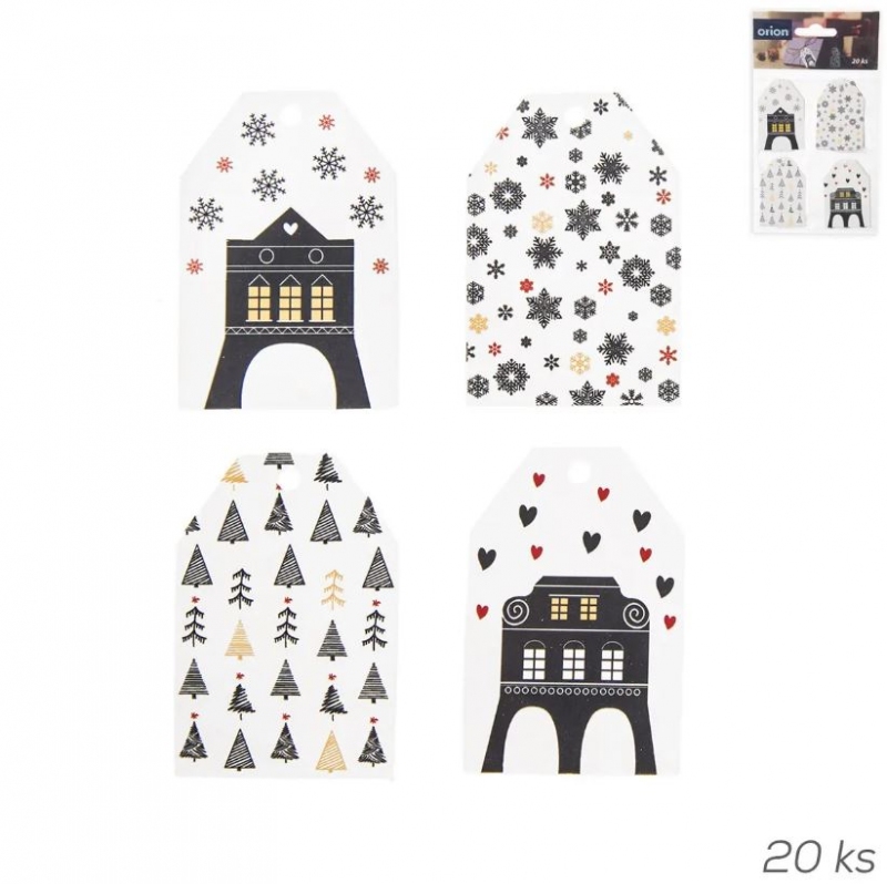 Visačky-jmenovky papír vánoční DOMKY 20 ks bílá