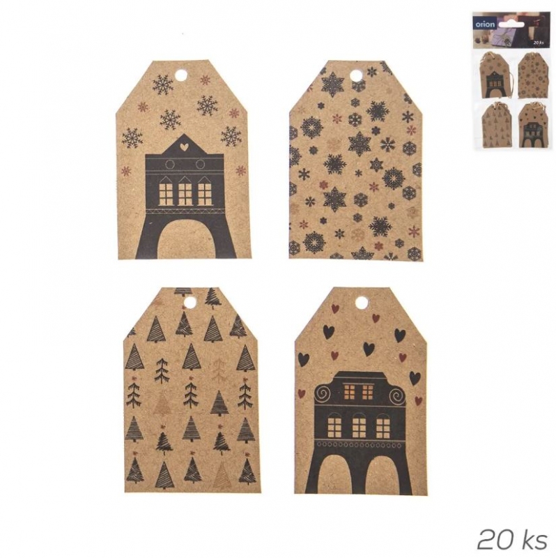 Visačky-jmenovky papír vánoční DOMKY 20 ks
