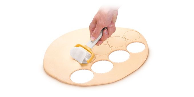 Vykrajovačem koleček s vlnitým okrajem Delícia jedním pohybem po plátu těsta vykrojíte stejná kolečka o o 7cm. Celý popis >