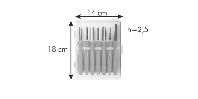 Originální Vykrajovací souprava PRESTO CARVING od firmy Tescoma. Sada obsahuje 6 vykrajovacích nožů, keramický brousek. Vše je uloženo v plastové krabičce. Celý popis >