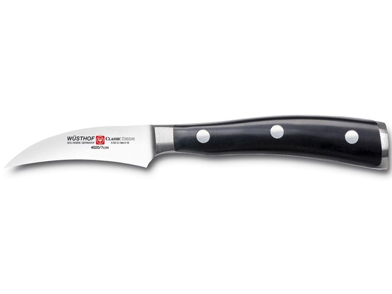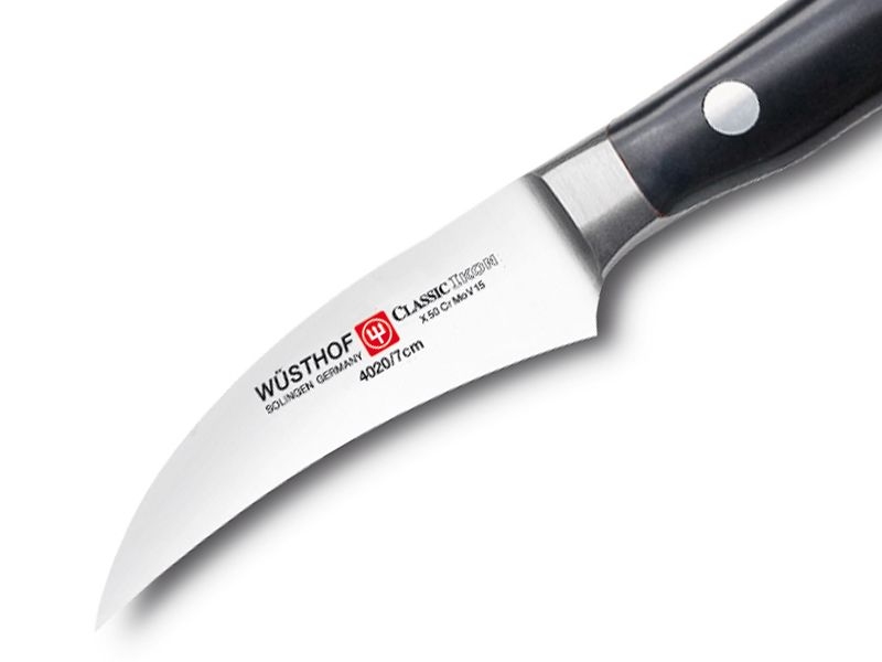 Velmi kvalitní kovaný nůž se zakřivením pro snadné zpracování ovoce a zeleniny. Wüsthof CLASSIC IKON Nůž na loupání 7 cm je velmi šikovný malý nůž s krátkou, šavlovou, zakřivenou čepelí. Nůž se hodí k loupání, čištění, ale i vykrajování zeleniny a ovoce. Předností nože je ruční honování a leštění pro dokonalé ostří. Nůž je vyroben z jednoho kusu a je opatřen ergonomicky tvarovanou rukojetí ze speciálního syntetického materiálu, která je příjemná na dotek. Na výrobu byla použita špičková německá legovaná ocel X50CrMoV15, která zaručuje dlouholetou trvanlivost a kvalitu. Vysoká tvrdost čepele 58 HRC. Samozřejmostí je vyváženost nože. Lze mýt v myčce nádobí, doporučujeme však ruční mytí. Hladký a elegantní přechod mezi čepelí a rukojetí zaručuje snadné čištění. Série nožů CLASSIC skvěle ukazuje nožířské umění značky Wüsthof, která je jedna z největších nožířských firem na světě s dlouholetou tradicí. Tato série je nejoblíbenější díky vysokému komfortu použití a vhodnoti jak pro domácí, tak profesionální použití.