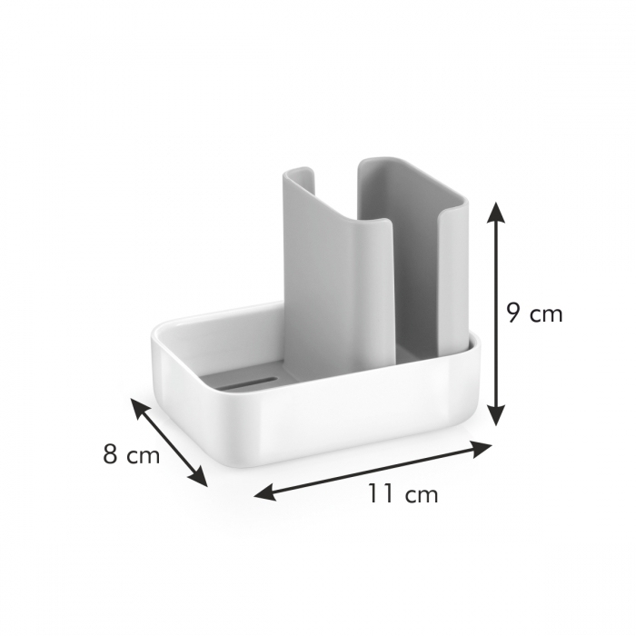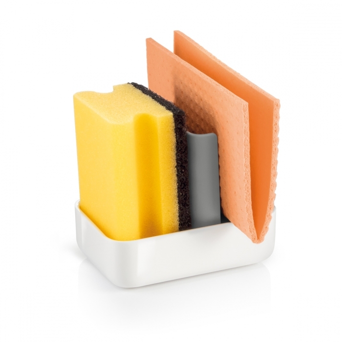 Slouží pro přehledné a zároveň hygienické odkládání houbové utěrky a houbičky na nádobí a jejich rychlé schnutí. Pro co nejdokonalejší proschnutí se utěrka i houbička vkládají do zásobníku ve vertikální poloze.