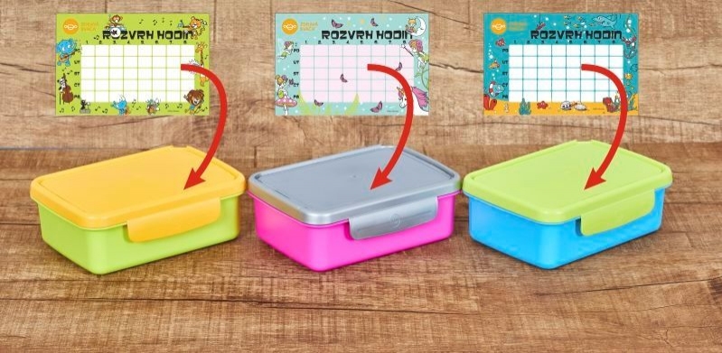 Praktický svačinový box od české firmy Zdravá lahev je vyrobena z bezpečného medicínského materiálu. Zdravá sváča Svačinový box komplet modrá/zelená se skvěle hodí pro děti, dospělé i seniory na nošení svačinky do školy, na kroužky, výlety, do práce, apod. Předností tohoto boxu je čirá průhledka na víku pro vložení vlastního obrázku, fotografie (10x15 cm) nebo třeba školního rozvrhu. Každý box je tak originál a snadno se rozpozná od ostatních. Zdravá sváča Svačinový box komplet modrá/zelená klíčové vlastnosti: neobsahuje škodlivé látky (ftaláty, změkčovadla, BPA a BPS) atestaci pro styk s potravinami a vyvařování v horké vodě uvnitř praktická posuvná a vyjmutelná dělící přepážka pevné panty umožňují víčko úplně otevřít bez překlopení krabičky, či úplně oddělit od misky vhodné pro uchování potravin v ledničce či mrazničce možnost krátkodobě ohřívat v mikrovlnné troubě (900W, maximálně 2 minuty) recyklovatelný (při výrobě nebyly použity látky zatěžující životní prostředí) k boxu lze dokoupit náhradní díly i v jiných barvách a vytvořit si tak různé barevné kombinace (přidat přepážku, vyměnit víko) skvěle jej doplní Zdravá lahev, kterou nabízíme v různých objemech a designech